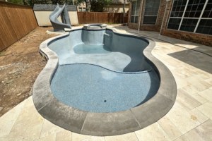 [/expand]Work may slow during the masonry phase of your pool construction project. One of the main reasons is to allow for curing of the gunite before applying tile, coping, or installing heavy water features. This curing period is essential to ensure the pool’s structural integrity before moving forward with other finishing touches.